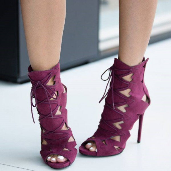 Hollow Out Peep Toe Lace Up Ankle Boot Stiletto High Heel Sandals Q-0039