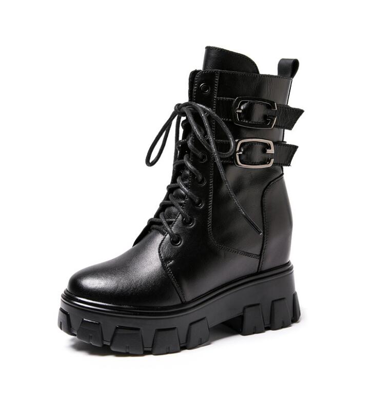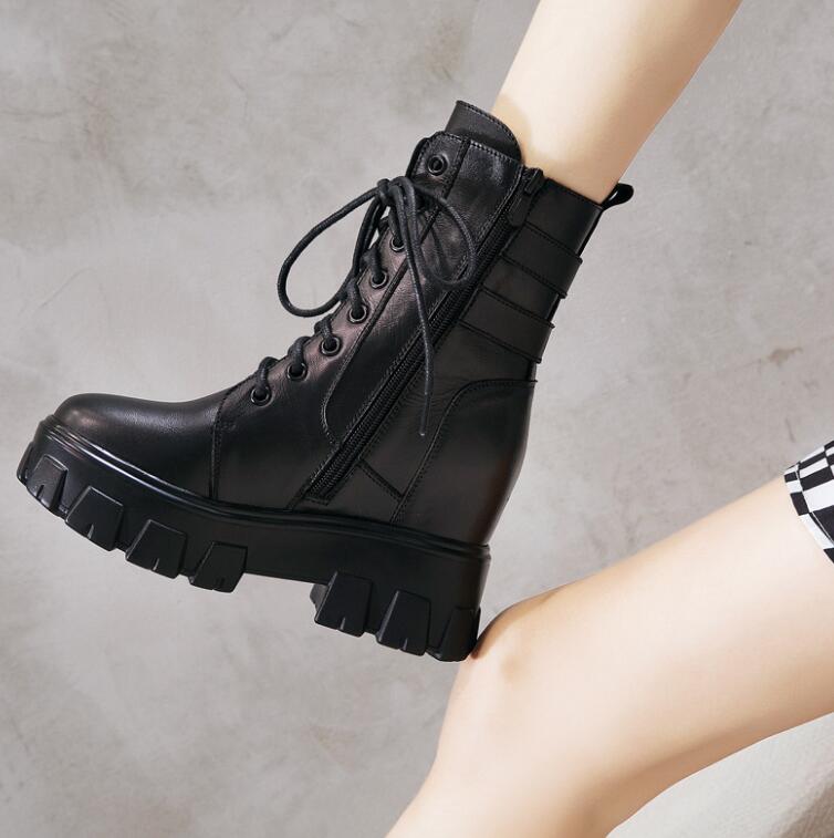 Martin Boots Women's 2020 Autumn And winter New Leather Boots Casual inner Heightening Short Boots Women's Thick-soled High-heeled Women's Boots G5750