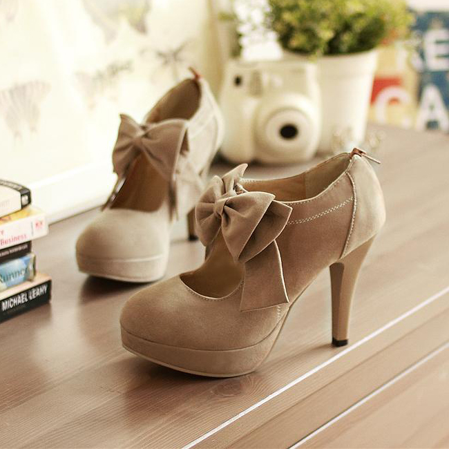Sexy and Cute Front Bow Embellished Stiletto High Heels Light Tan Pumps