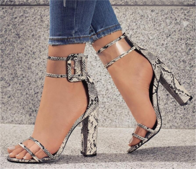 Transparent Sexy Thick High Heels With Buckle Women Python Wild Club Stress Sandals Female
