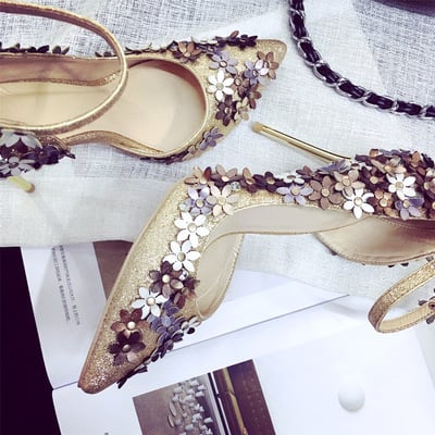 Classic Fashion NIce Women's Shoes Pointed Shallow Mouth Fine with High Heels Sequins Flowers Bride Wedding Shoes LOV