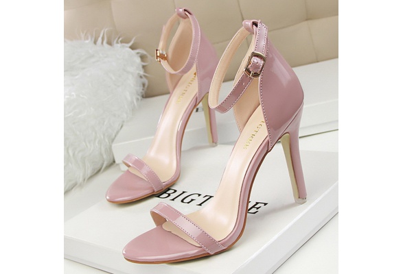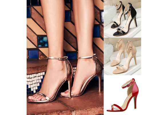 PU Leather High Heels Pumps Women Sequined Ankle Strap Dress Shoes Woman Open Toe Pumps Fashion