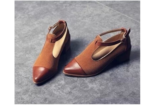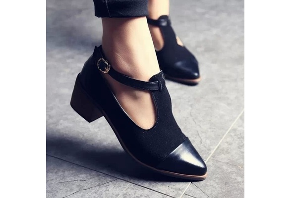 Women Heels Retro Ladies Shoes Women High Heels Wood Chunky Heel Pointed Toe High Heels T-Strap Solid Women Pumps