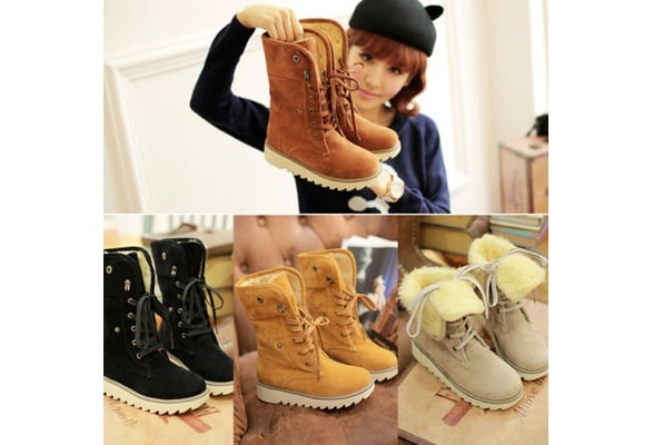 New Fashion Women Lady Girl boots comfort shoes flats Lace-up round toes Ankle Winter Warm High heels Plus