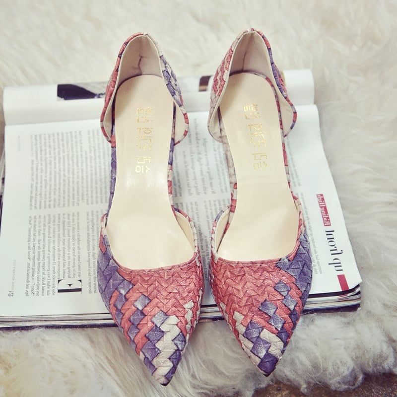 Women Pointed Toes High Heels Shoes Weave Printing GradienCopy of cheap woman Sexy shoes woman fish mouth cool nude Platform high heel Sandal evening