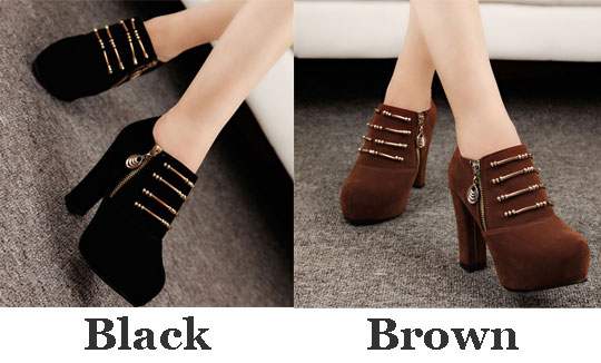 Cool Black Zipper High Heel Shoes Q-0008