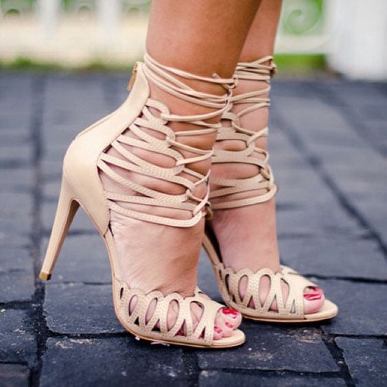 Cut Out Straps Peep Toe Ankle Lace Up Stiletto High Heel Sandals Q-0073