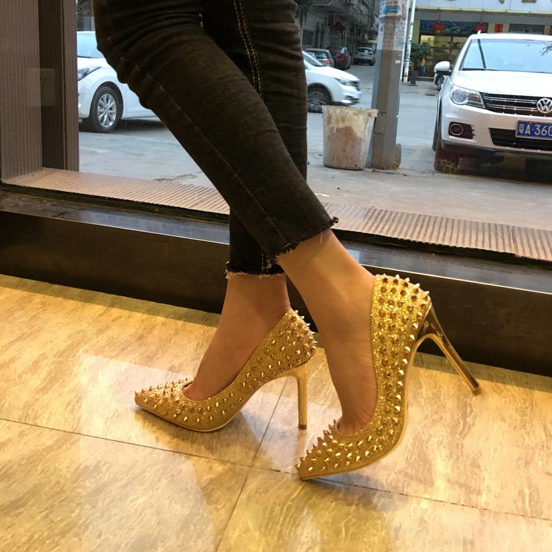 Sequined Rivets High Heel Stiletto Shallow Pointed Single Shoes Female Q-0114