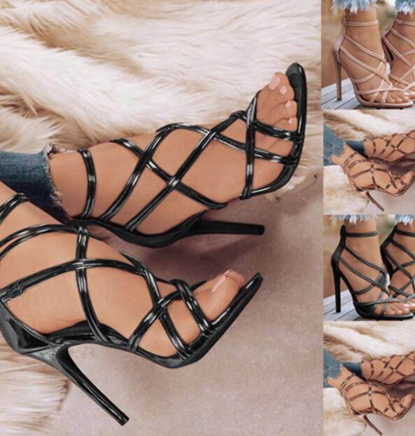 Hollow Out Lace-up Thin Heeled Sandals G-2963
