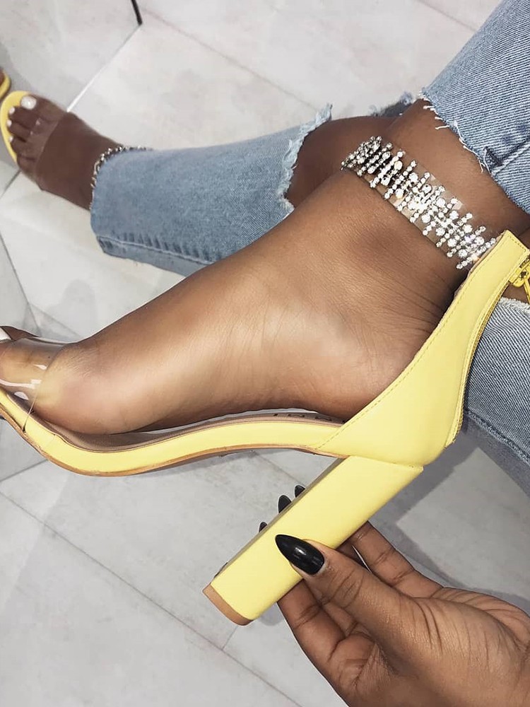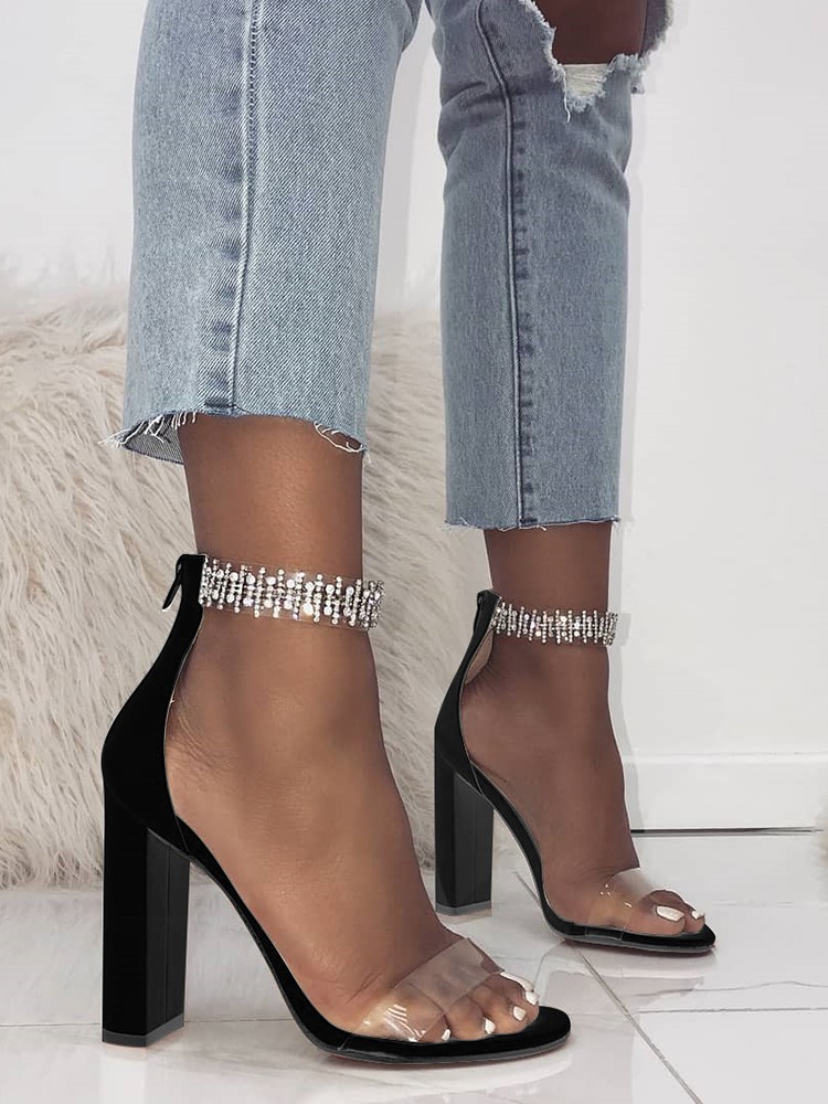 Glittering Transparent Strap Chunky Heeled Sandals G-2964