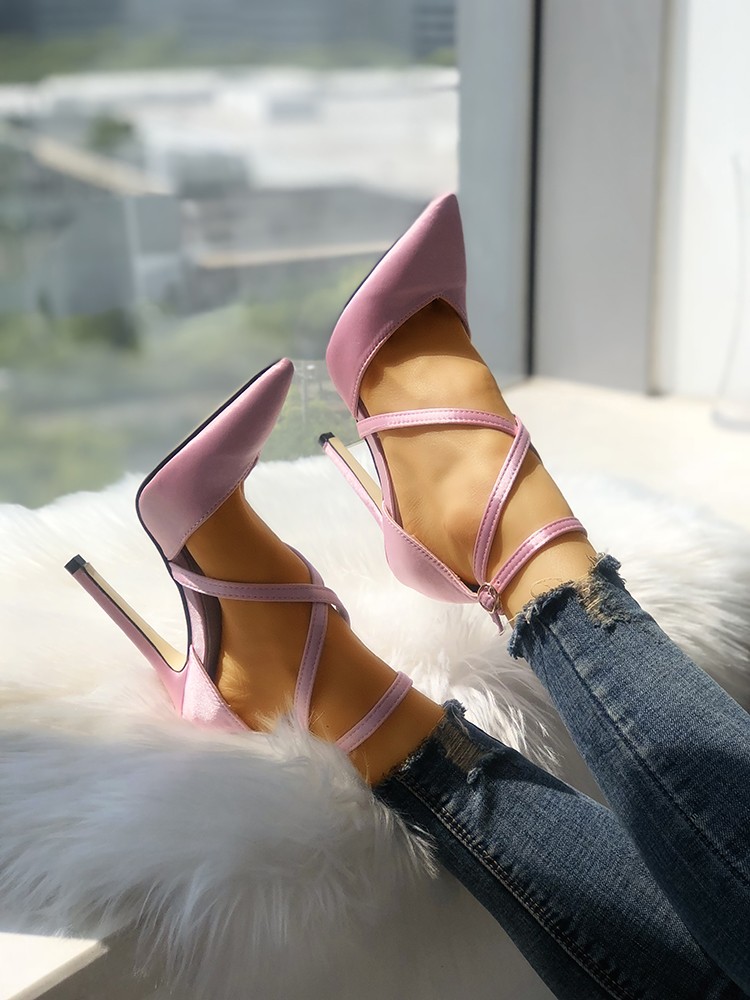 Solid Strappy Buckle Pointed Toe Heels G-2968