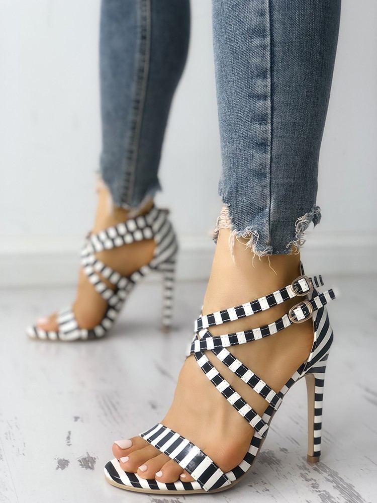 Striped Crisscross Strappy Thin Helled Sandals G-2971