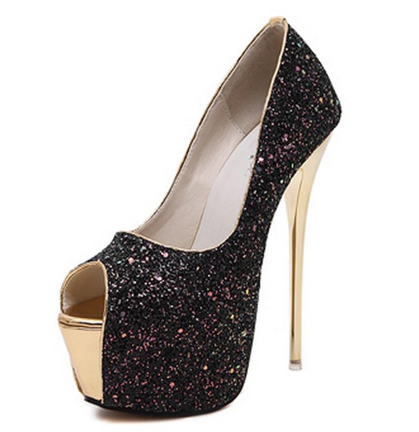 Sequins Platform Women Fashion Peep Toe High Heels Shoes G-2979