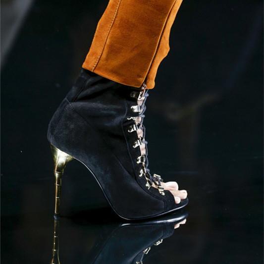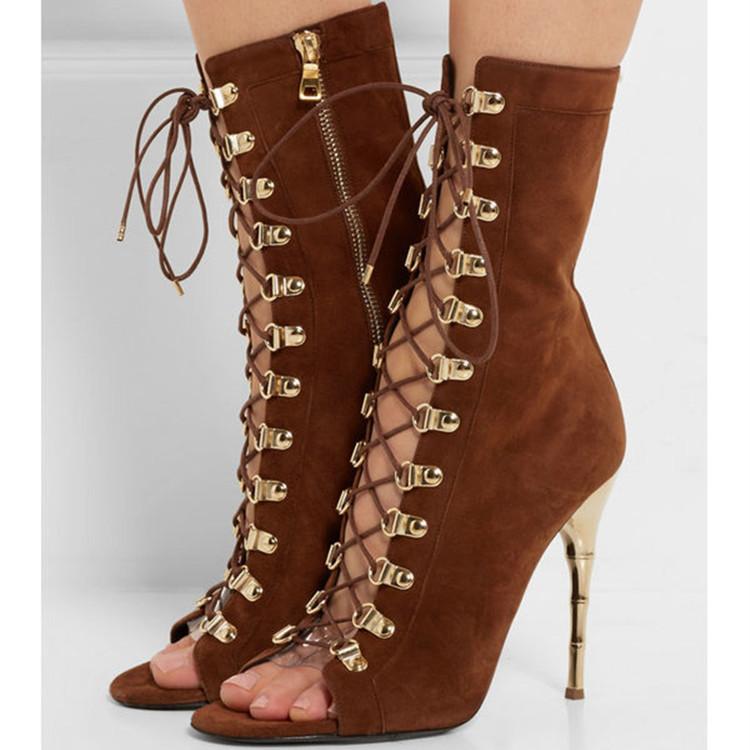 Lace Up Side Zipper Peep Toe Stiletto High Heels Short Boot Sandals G-2984