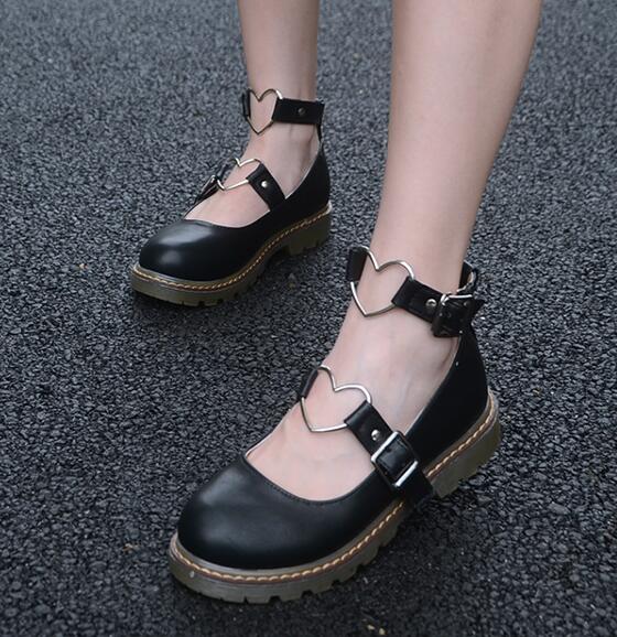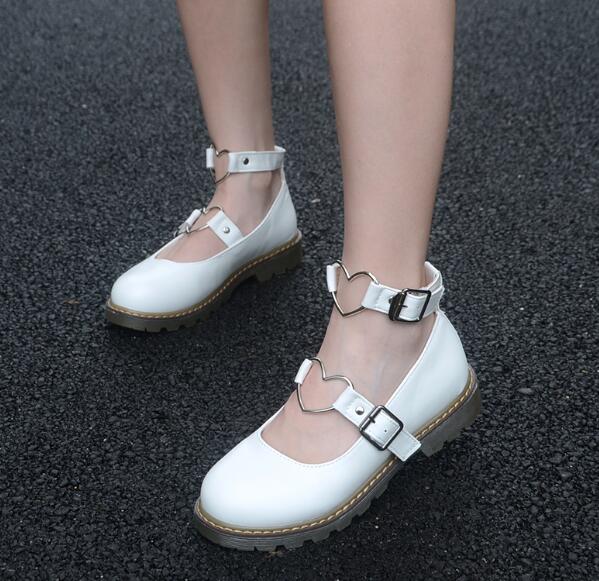 Black/White/Pink Lolita Heart Buckle Shoes G-2999
