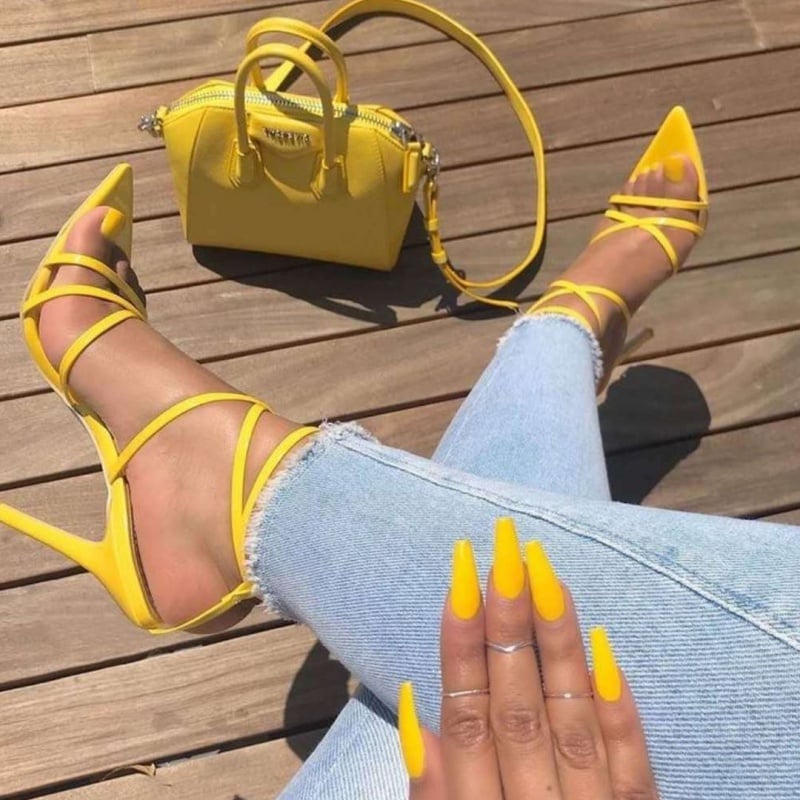 Sandals Summer's New Pointy Fish-tip Ribbon High Heels F6752