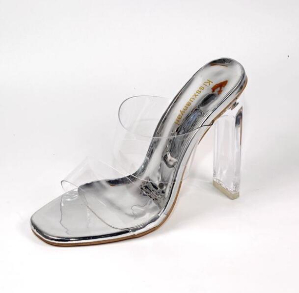 Fish Mouth Transparent Film Crystal Thick High Heel Sandals Large Size Women's Explosive Shoes L7541
