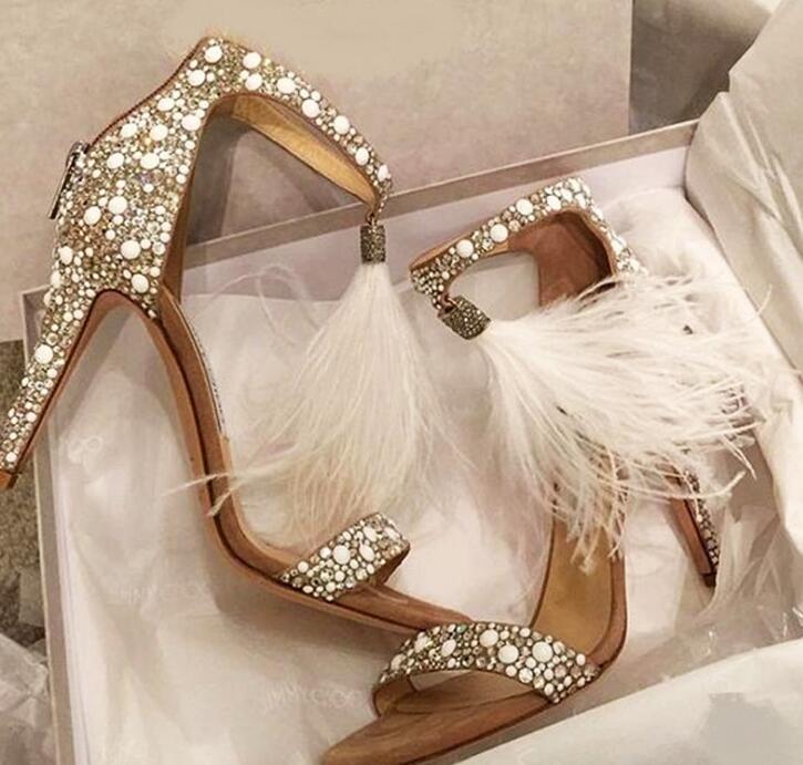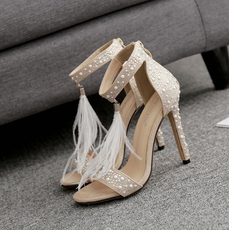 New Fashion Sandals Fish Mouth Hairy Beaded Fine Heel Super High Heels Large Size Cross-border Women's Shoes F6752