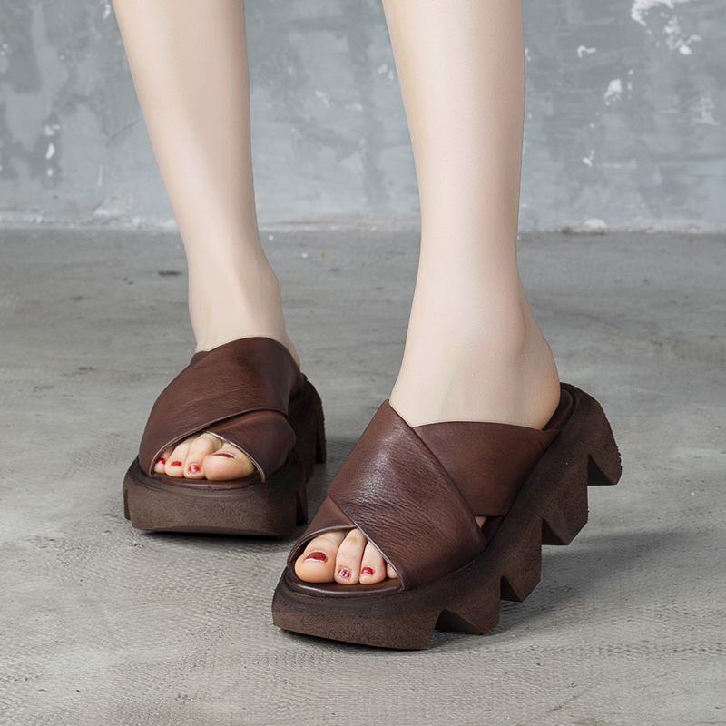 Retro polished leather women's shoes in-line platform shoes 2020 summer new cowhide slippers women's platform F5720