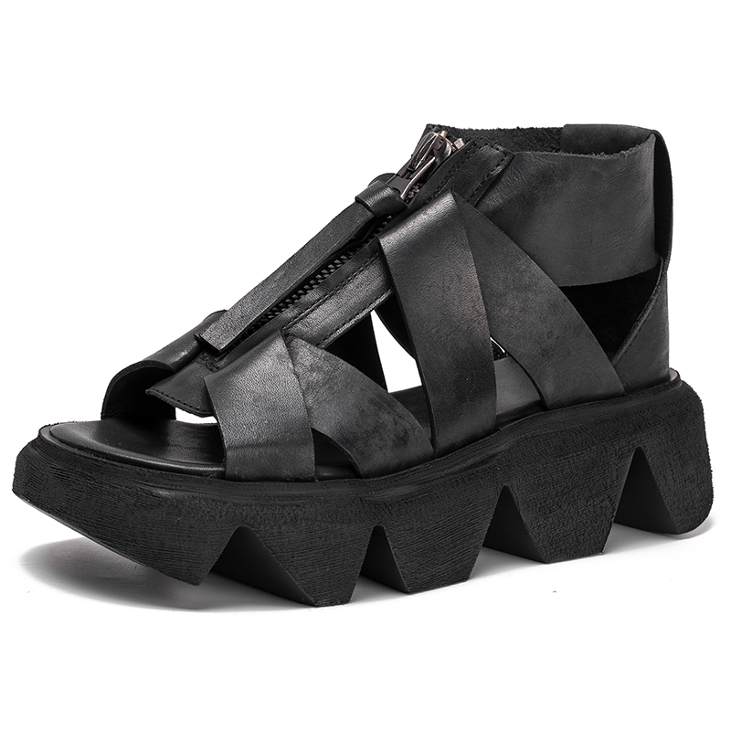 Retro platform platform shoes leather women's shoes front zipper 2020 summer new sandals cowhide G2475