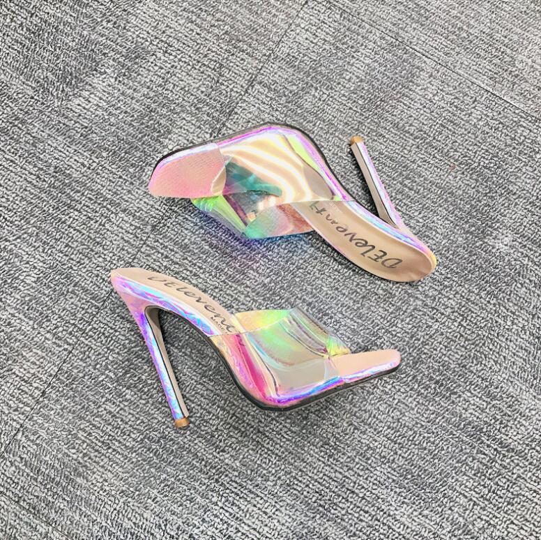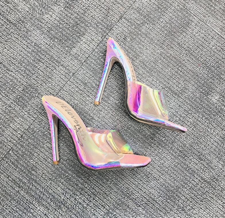 Heels Shoes Silver Square Toe High Heel Sandals Women Slippers large size 43 G2822