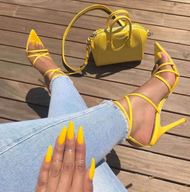 Explosive Style Sandals Pointed Toe Cross Strap Stiletto High Heels Large Size 43 Women's Shoes F6752