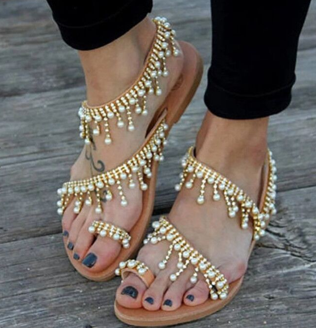 Flat Sandals Women Summer Leisure Beach Pearl Set Feet Flip Flops Flat And Slippers G4782