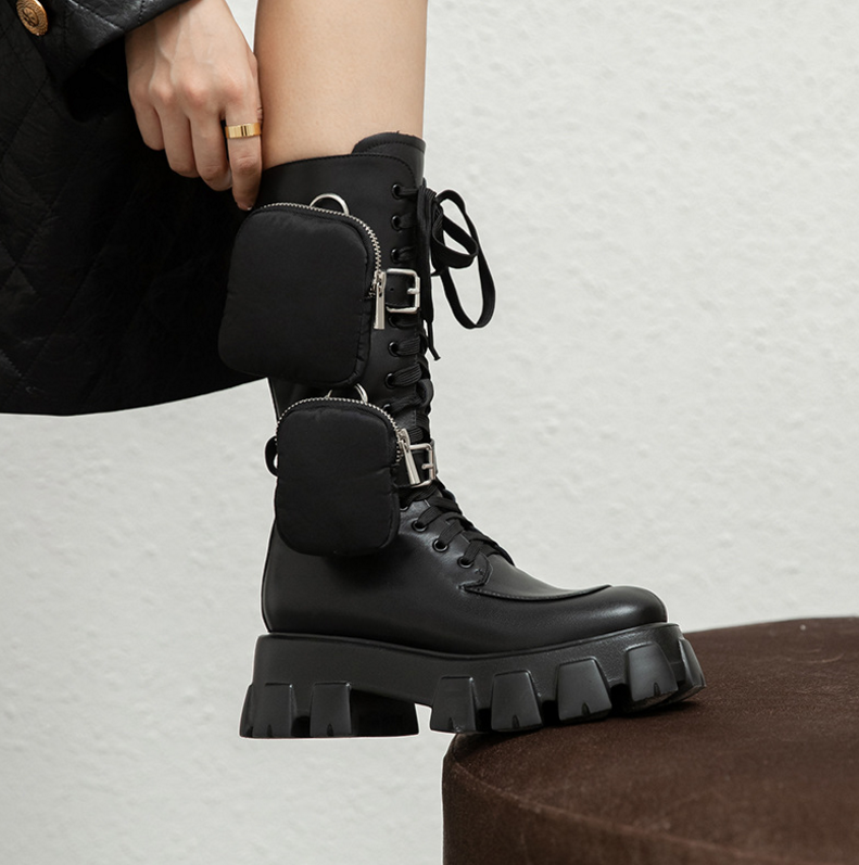 Double Bag Thick-Soled Mid-tube Autumn And Winter New Handsome Martin Boots Cowhide Fashion Women's Boots G5720