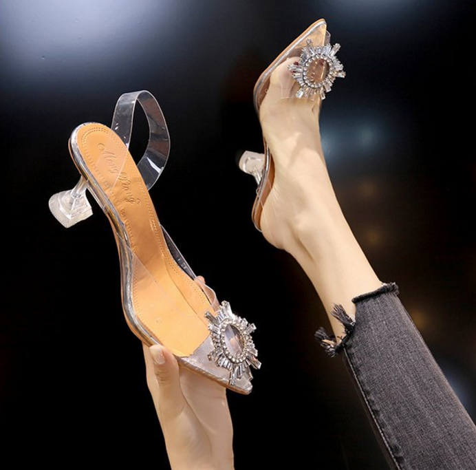 Summer New Style Baotou Pointed Toe Cover Foot PVC Sexy Metal Decoration Increased Shoes B8472