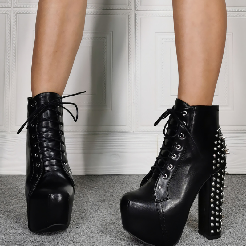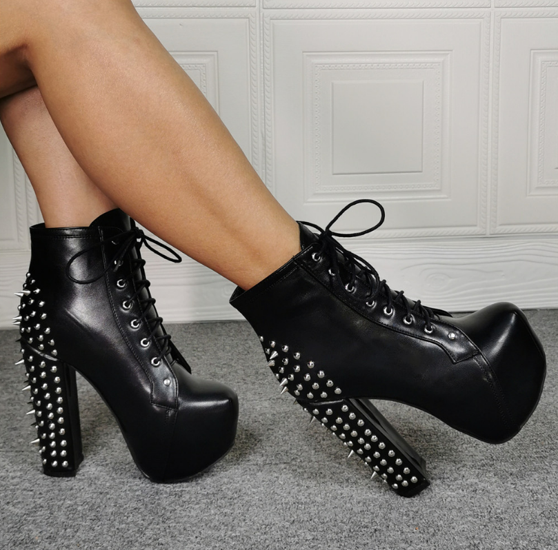 Sexy Black Rivet Thick Heel Waterproof Platform Super High Heel Plus Size 43 Female Fashion Short Boots G3425