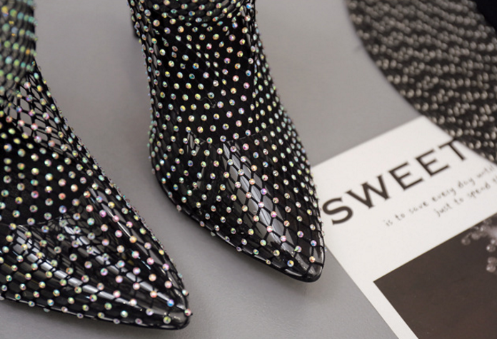 2020 Europe And the United States Sexy Black Stiletto Point toe Hollow Mesh Fishnet Socks Boots Ladies High Heel Ankle Boots G4710