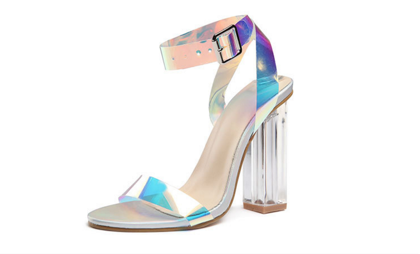 Women's Sandals One Word Buckle High Heel Sandals Sex Colorful Sandals G5740