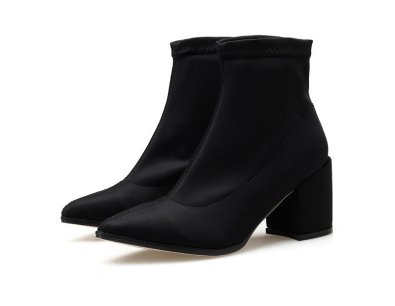 New Boots Thick Heel Stretch Cloth Short Tube Women's Boots Woman Shoes H8752