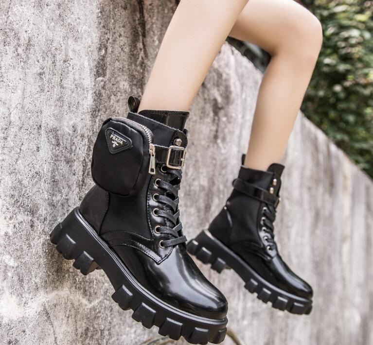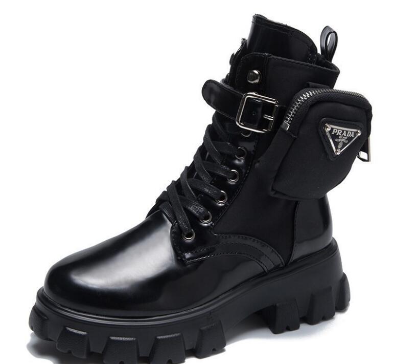 Thick-soled Martin Boots Women Leather Wallets Belt Buckle Straps Ankle Boots High Heel Stretch Women's Boots F7510