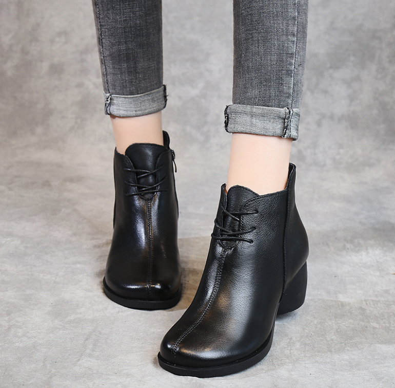 New Retro Leather Comfortable Thick heel Women Boots High heel Martin Boots Leather Boots Short Boots Women G5210