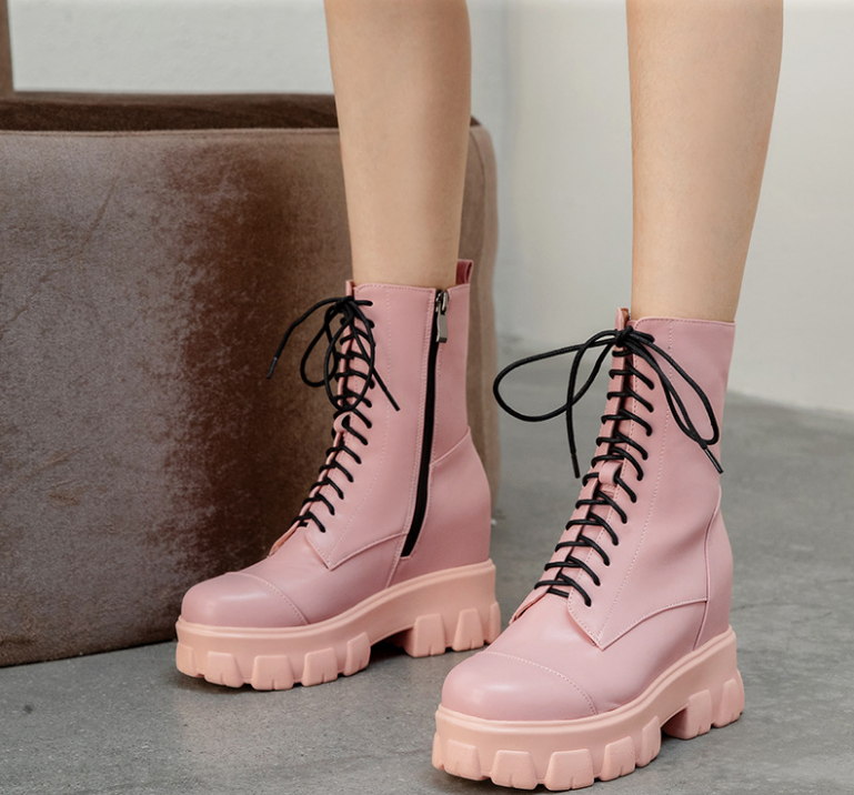 Martin Boots Women's Thin, Breathable, Versatile, Thick-soled, Height-Enhancing Short boots, High-top Flat Boots H7510