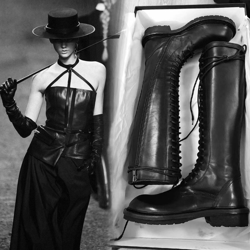 2020 Autumn Winter England Long Boots Knight Boots Cowhide Boots But Knee Women Boots D6421