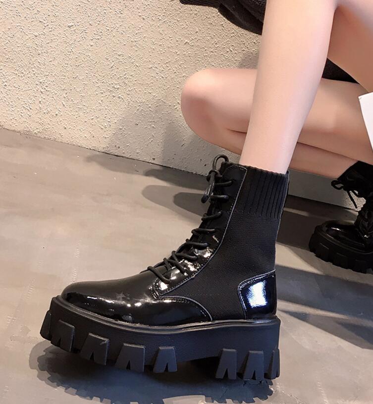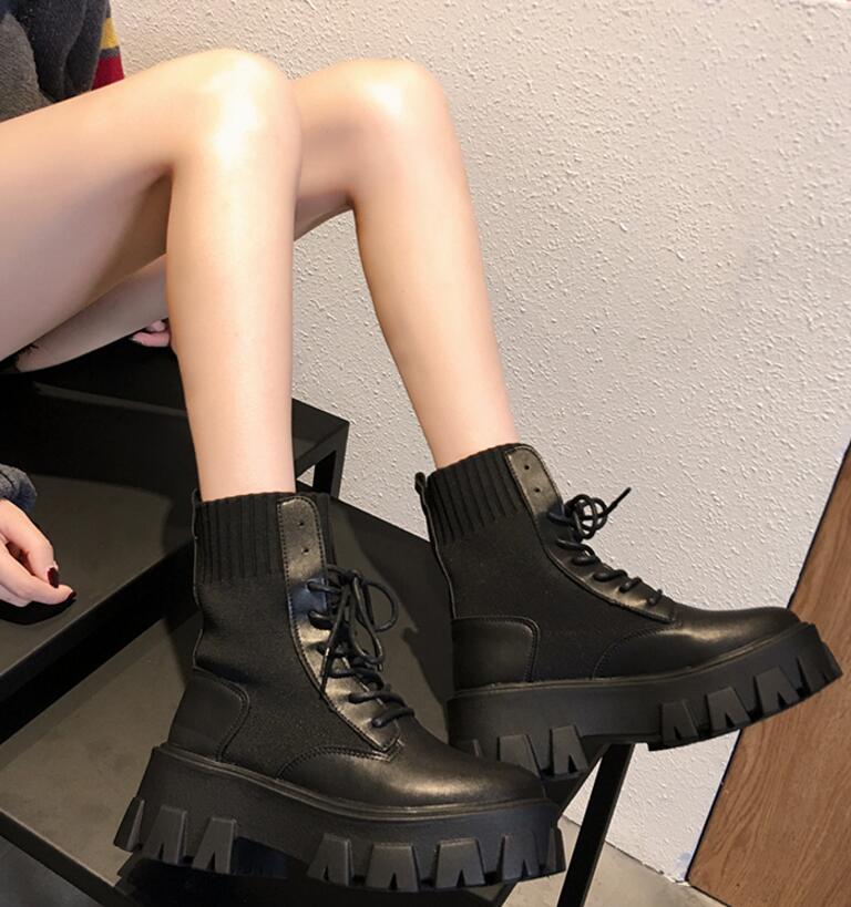 New Lace-up Martin Boots With Thick Heels And High-heel Motorcycle Boots H6754