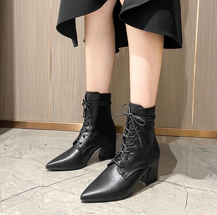 Chun-heel Martin Boots 2020 Spring And Autumn New Lace-up Pointed High-heeled Short boots F7620