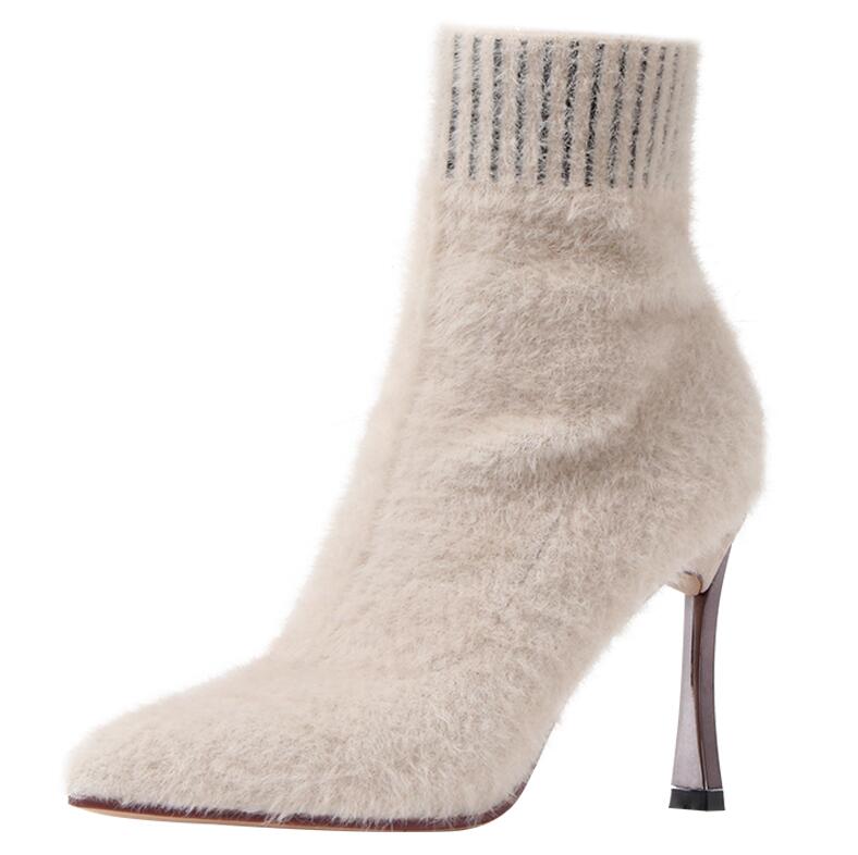 Women's Boots 2020 New Women's Hairy High-Heeled Short Boots, Women's Stiletto Elastic Boots F6210