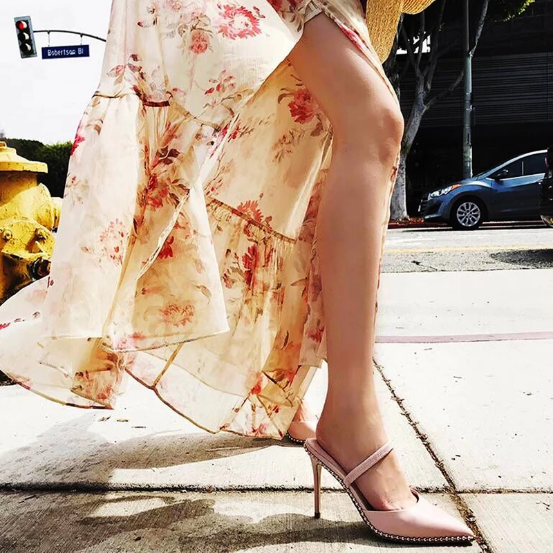 Hollow white pointed rivet stiletto black high heel sandals women 2021 S-252