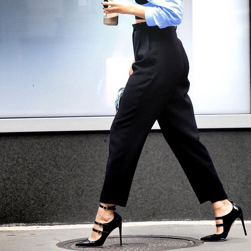 2021 summer new one-word buckle all-match pointed black patent leather single shoes S-256