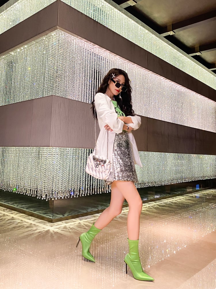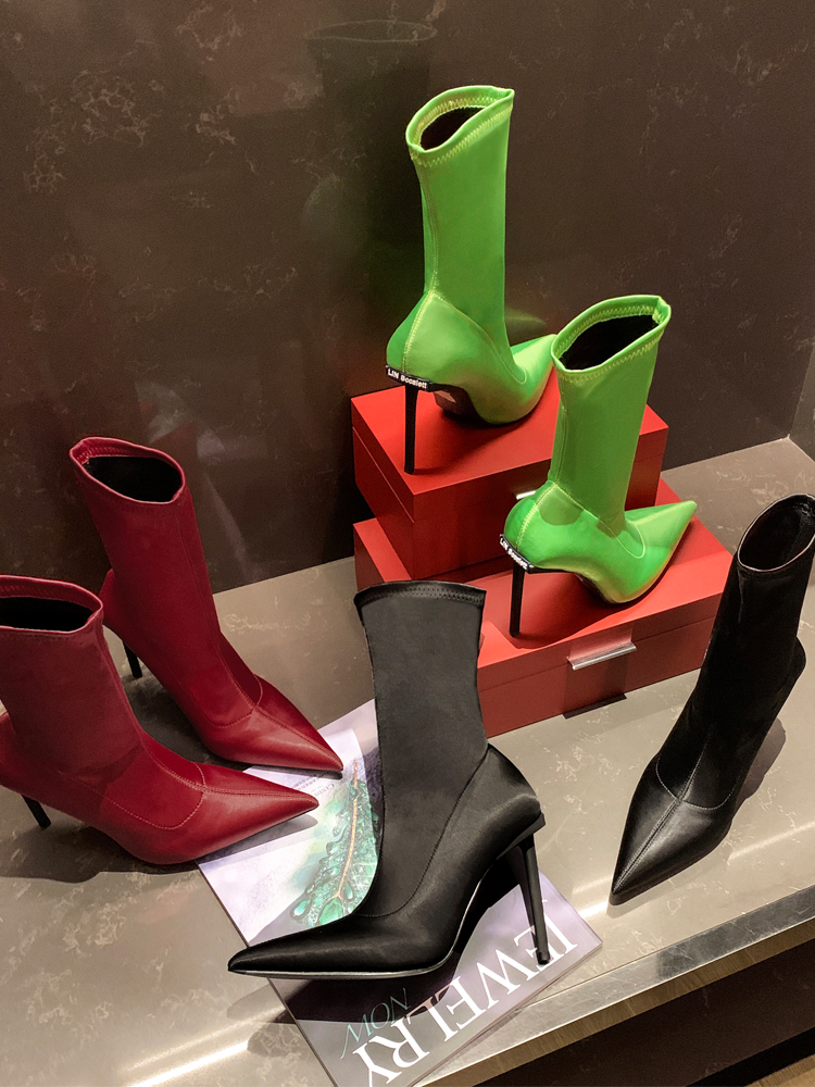 Black pointed toe elastic boots in the barrel S-268