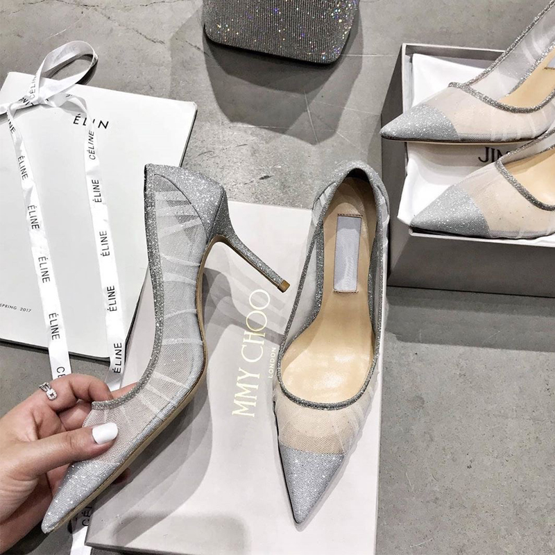 Black high-heeled shoes women stiletto silver lace mesh pumps S-274