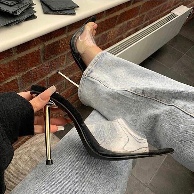 Simple metal high-heeled stiletto transparent pointed sandals and slippers women S-348