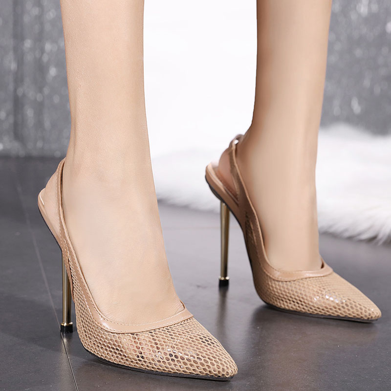 High heel mesh shoes pointed toe stiletto heel sandals women S-363