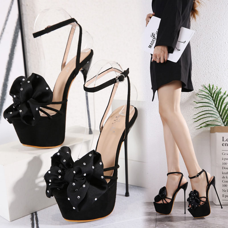 Sexy Waterproof Platform Stiletto Heel Big Bow Rhinestone Women Sandals S-393