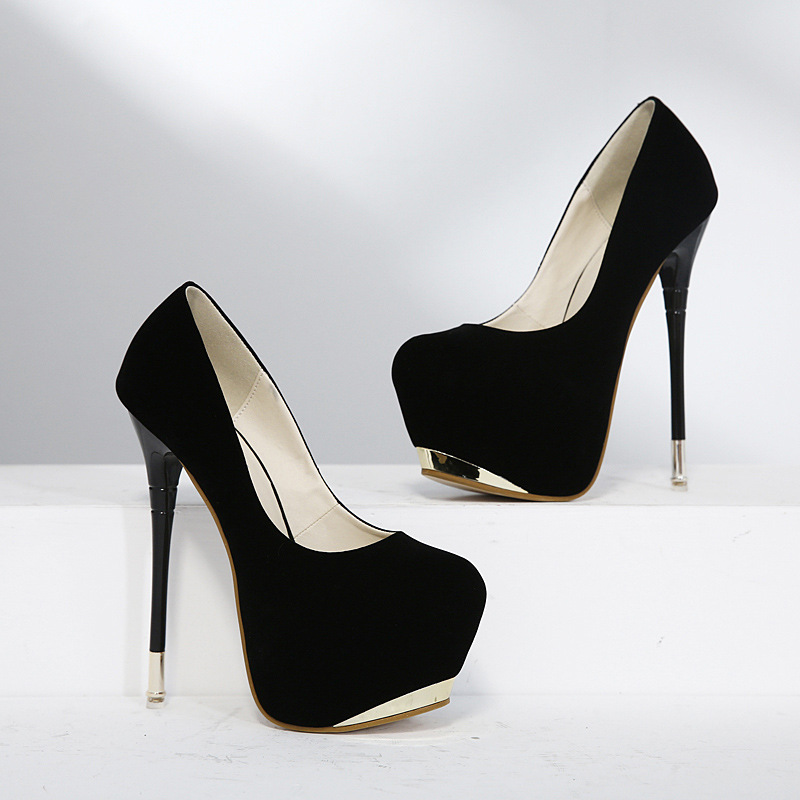 Solid Color Round Toe Low Cut Platform Super High Stiletto Heels Party Shoes S-420