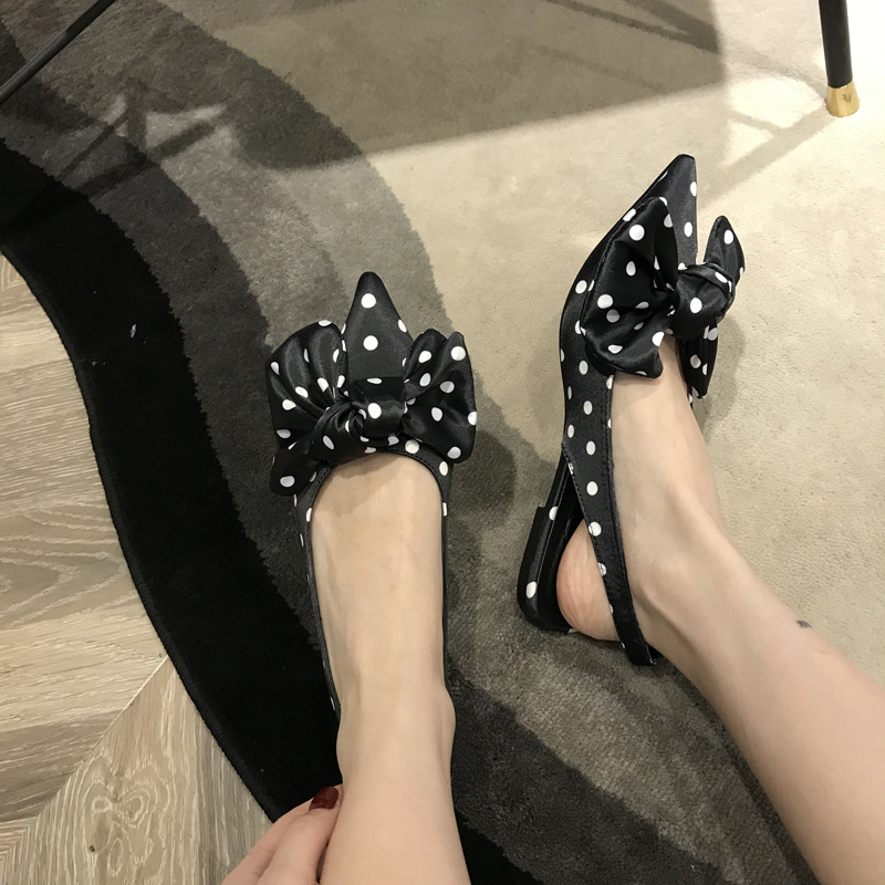 Pointed wave point bow flat sandals and round point half sandals-Black S-422