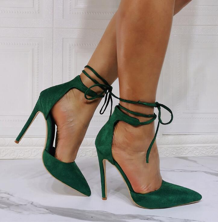 Lace-up sexy ultra-fine high-heeled pointed-toe women's single shoes S-505